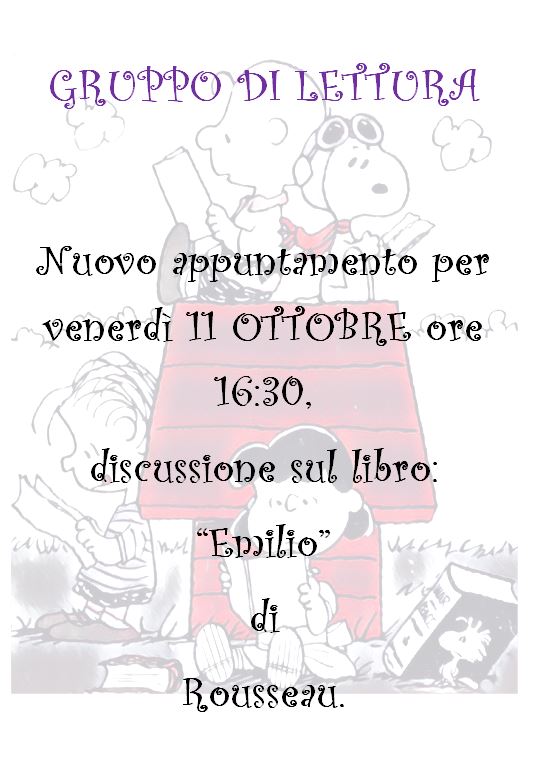 Venerdì 11 ottobre, alle ore 16.30, presso i locali della Biblioteca di mignanego, riparte il gruppo di lettura. Per informazioni e iscrizioni passate a trovarci in biblioteca o telefonate allo 0107720477.