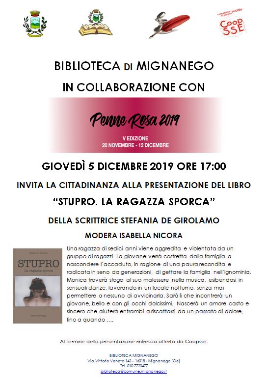 Nella giornata internazionale per l’eliminazione della violenza contro le donne la Biblioteca di Mignanego è lieta di invitarvi