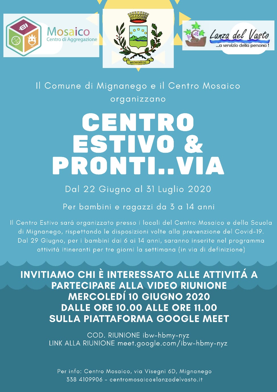 “Centro Estivo & Pronti.. Via” in partenza dal 22 giugno 2020 fino al 31 luglio 2020!