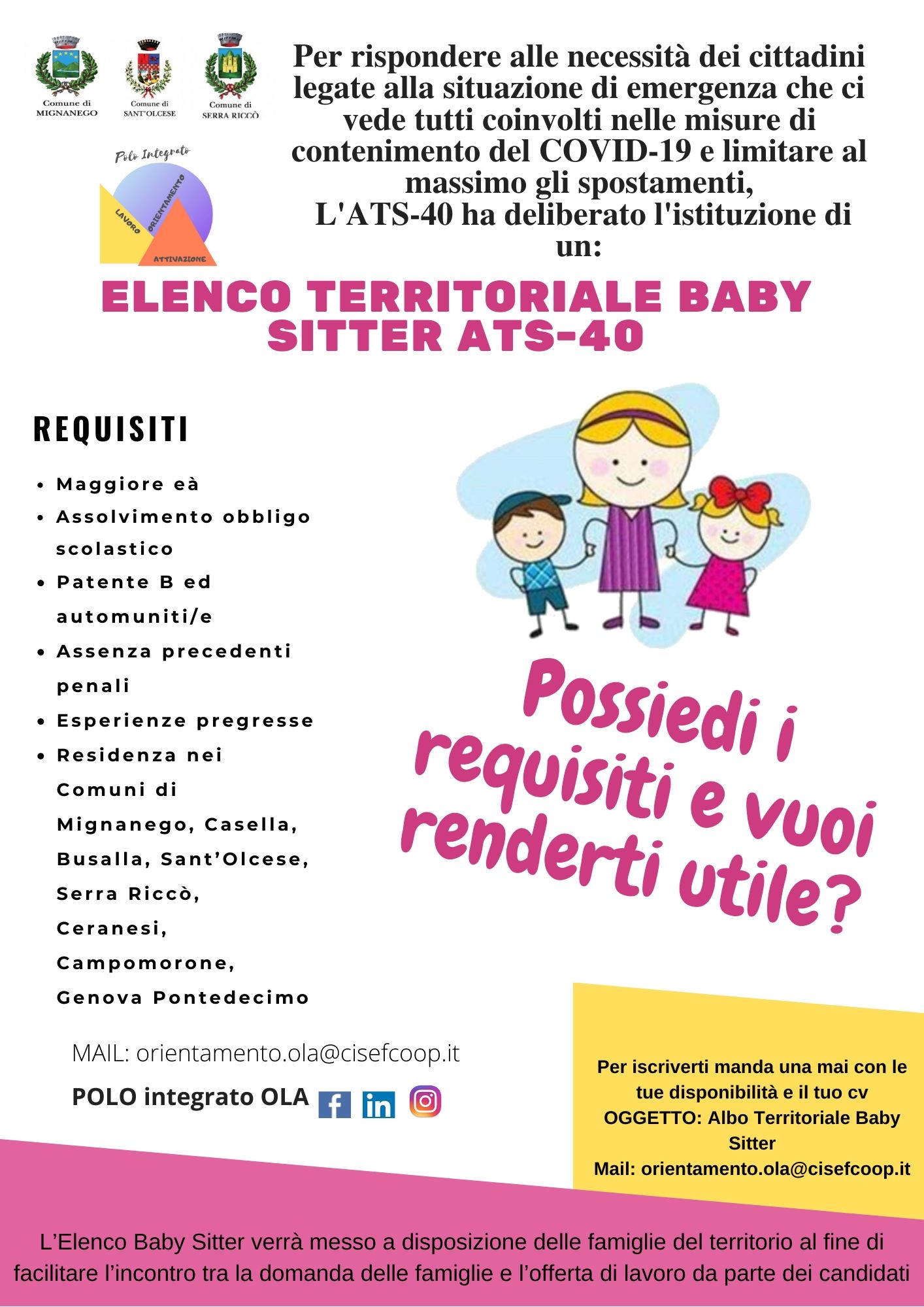 Comune di Mignanego e Polo Integrato Ola attivano l’elenco territoriale “baby sitter”. Informazioni su come accedervi o parteciparvi nel dettaglio sui volantini.