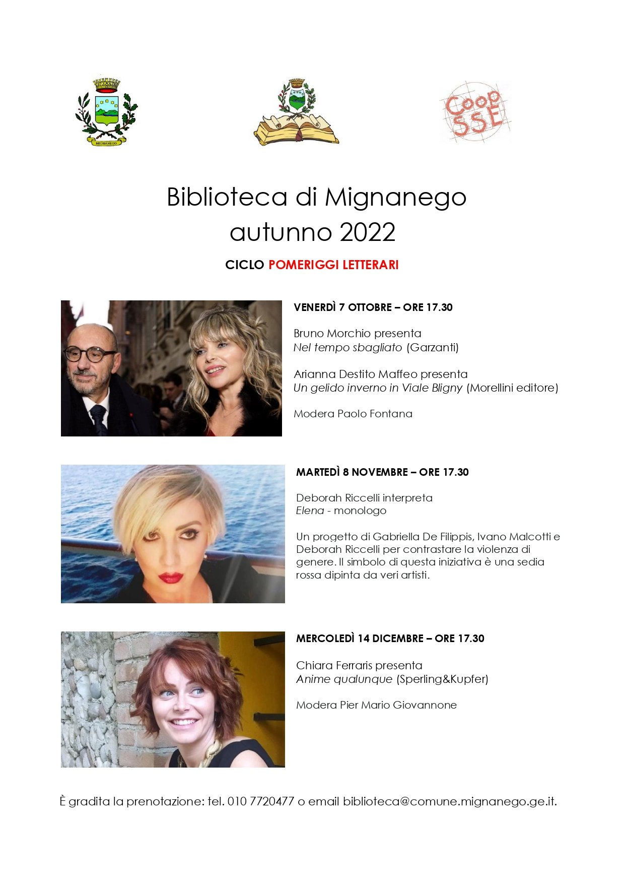 Riprendono gli appuntamenti con la letteratura e la cultura nella Biblioteca di Mignanego.