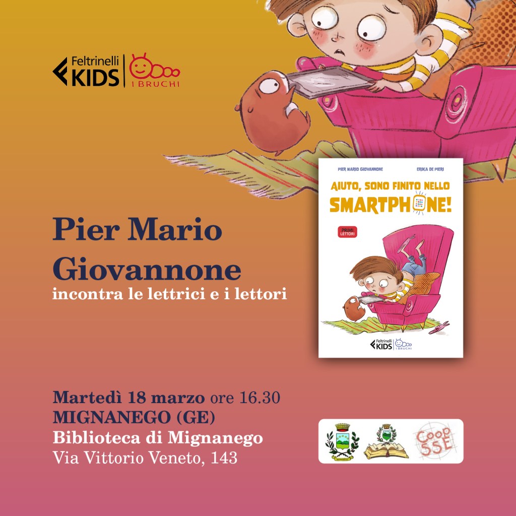 Incontro per bimbe e bimbi dai 5 ai 7 anni, in occasione dell’uscita dell’ultimo libro di Pier Mario Giovannone, pubblicato da Feltrinelli. L’appuntamento è per martedì 18 marzo alle ore 16.30. Se potete, confermate la partecipazione scrivendo a biblioteca@comune.mignanego.genova.it o telefonando allo 010 7720477.